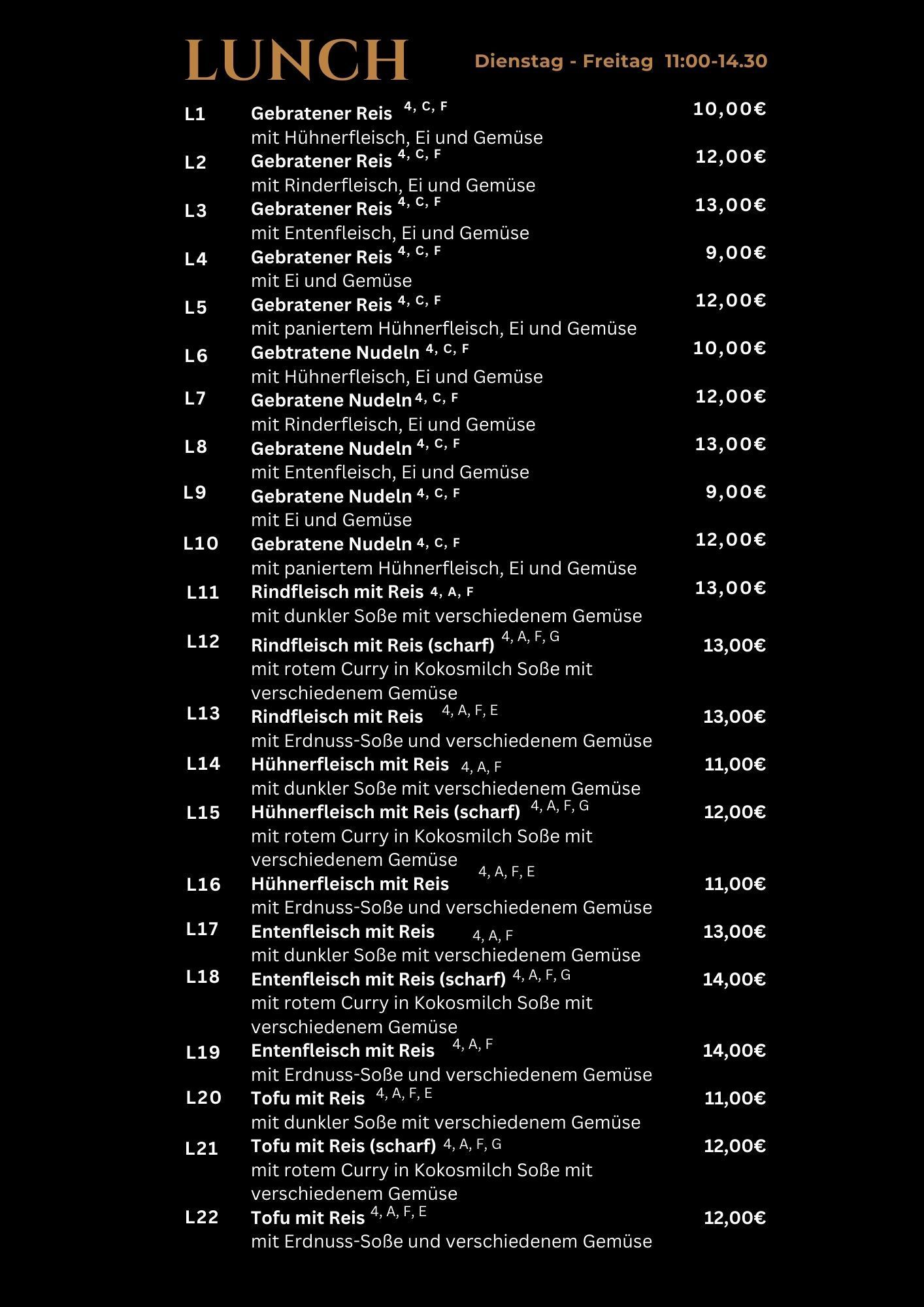 Zu unserem Mittagsmenü (Dienstag bis Freitag von 11 - 14:30 Uhr) kriegen Sie eine kostenlose Pekingsuppe oder ein kleines Softgetränk ihrer Wahl
